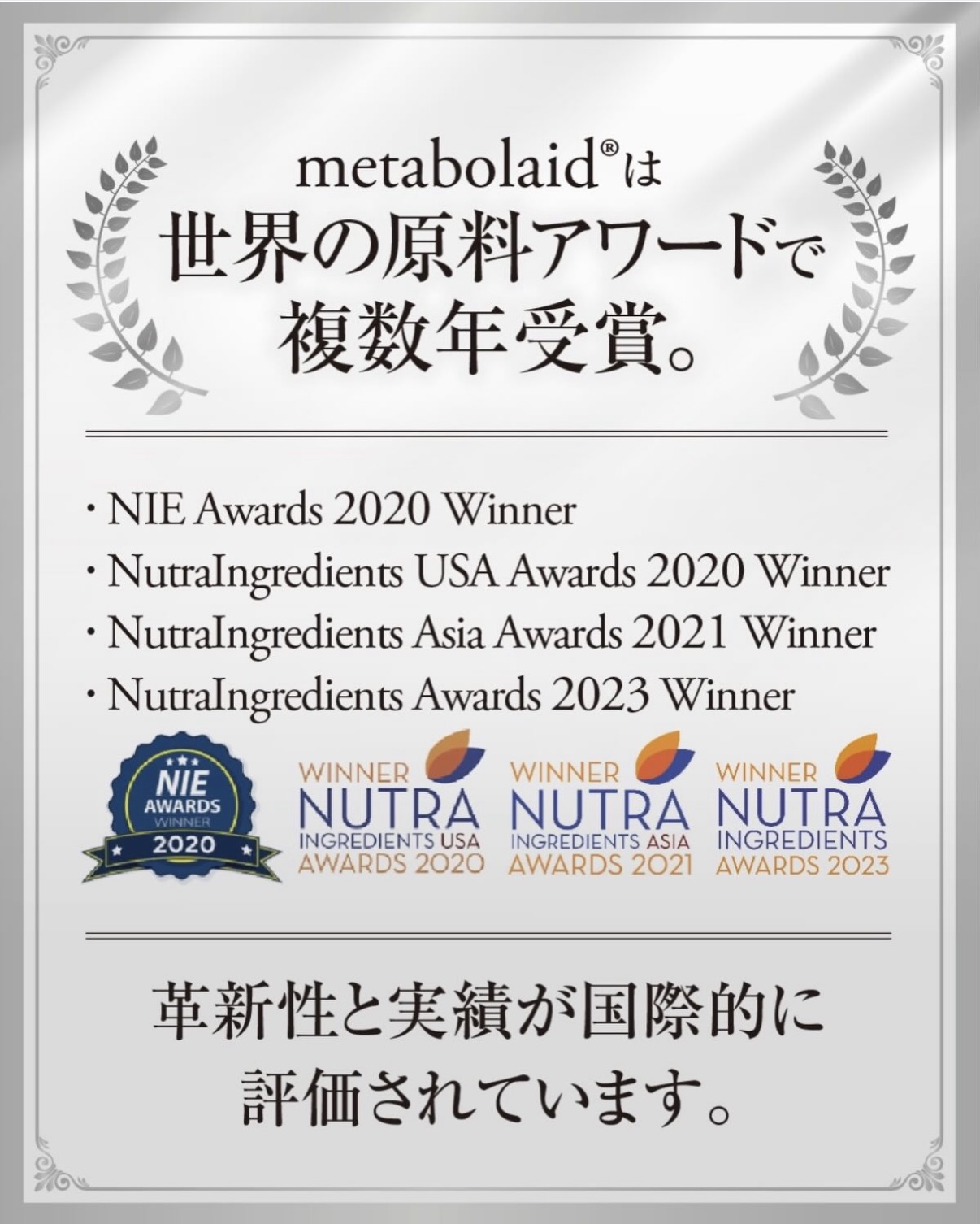 ②世界の原料アワードで複数年受賞し、国際的に評価されている成分